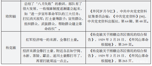 另有一些文献,可以从侧面了解到打土豪对该地区军事经济的重要,如当时湖南省委给湘赣边特委及红四军军委的信中言到“你们应采取积极向外发展的策略,一切经济的(米粮布匹……)军事的(如洋圆)困难问题,都可解决。”[39]后来陈毅也有“又因敌人封锁,红军未到远地游击,以致经济没有出路。”[40]的类似记录。因此,井冈山会师后该地区的红军似只有在不断作战中,才能在经济上保证红色割据的存在。